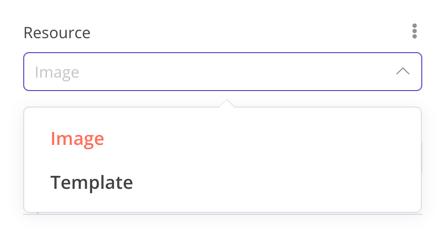 {displayName:'Resource',name:'resource',type:'options',options:[{name:'Image',value:'image',},{name:'Template',value:'template',},],default:'image',// The initially selected optiondescription:'Resource to consume',displayOptions:{// the resources and operations to display this element withshow:{resource:[// comma-separated list of resource names],operation:[// comma-separated list of operation names]}},}